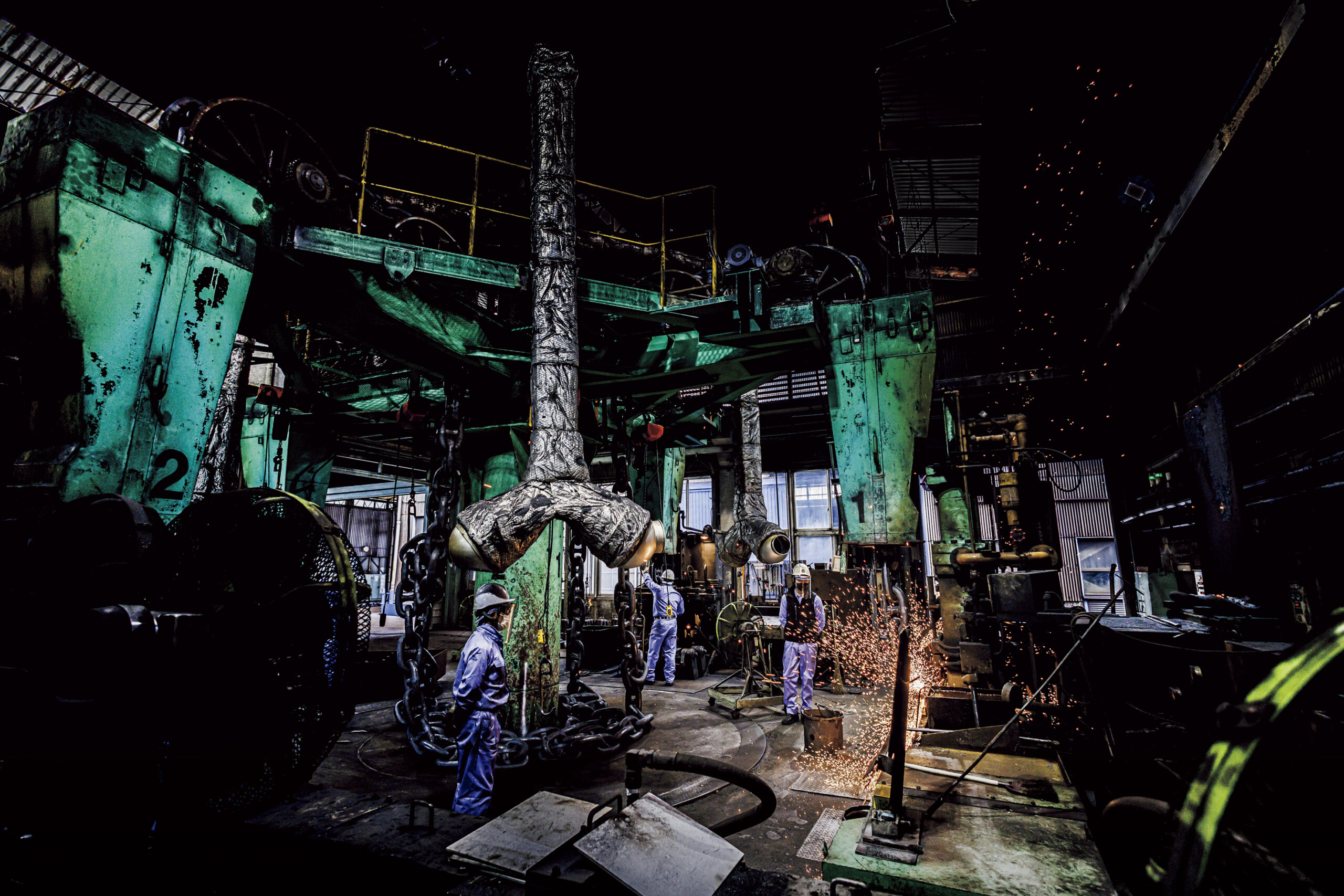 1936年創業の老舗製鎖工場では、1つの鎖の大きさが身長大という巨大な鎖も製造。洋上風力発電やタンカー係留などの用途に使われているそうです。